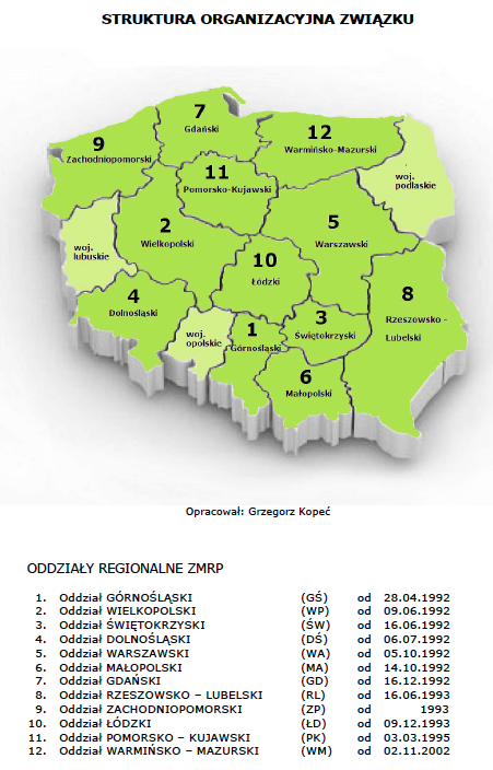 Jako pierwszy w kraju powołany został nasz Oddział Górnośląski. Jego pierwszym przewodniczącym został kolega Zbisław Hadrian, wcześniejszy członek założyciel Związku, obecnie honorowy członek ZMRP.