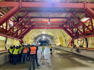 Wizyta na budowie tuneli była kolejną okazją do poszerzenia wiedzy z zakresu ich projektowania oraz budowy metodą NATM. Poprzednie nasze wizyty na budowach tuneli (droga S7 i S1) pozwoliły nam poznać tylko tradycyjną metodę górniczą. W ten sposób mogliśmy porównać je ze sobą i zobaczyć inne nowe problemy realizacyjne czy technologiczne.