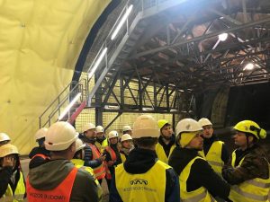 Początek wizyty na budowie, to obowiązkowe szkolenie BHP, które musieli przejść wszyscy uczestnicy wycieczki, aby móc bezpiecznie wejść do wnętrza budowanego tunelu. W ramach części seminaryjnej przedstawiciele zamawiającego i wykonawcy zaprezentowali rozwiązania projektowe tunelu, omówili problemy związane z projektowaniem i przygotowaniem tej inwestycji oraz odpowiedzieli na liczne pytania jakie pojawiły się na sali.