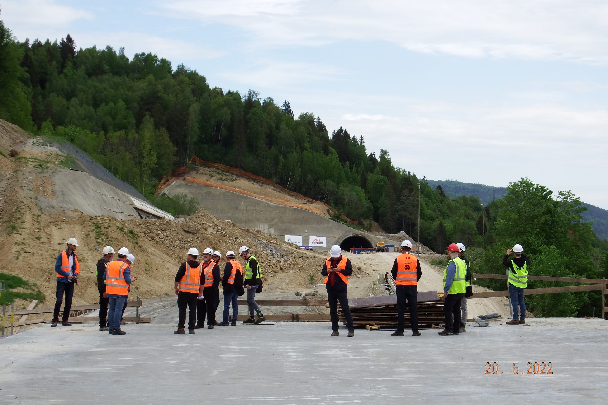 W dniu 20.05.2022 r. w ramach Śląskiej Szkoły Mostowej odbyła się wycieczka techniczna na budowę drogi ekspresowej S1 (odcinek Przybędza-Milówka). Jest to tzw. obejście Węgierskiej Górki, której mieszkańcy z niecierpliwością czekają na dokończenie robót. Wykonawcą tego odcinka jest konsorcjum firm MIRBUD S.A., KOBYLARNIA S.A. i INTERBUDOMONTAŻ z Ukrainy. W trakcie wycieczki zobaczyliśmy, jak postępują prace przy budowie dwóch nitek tunelu pod masywem Białożyński Groń o długości prawie jednego kilometra. Oglądnęliśmy też budowę estakady EST-5 z betonu sprężonego długości ponad 200 m.