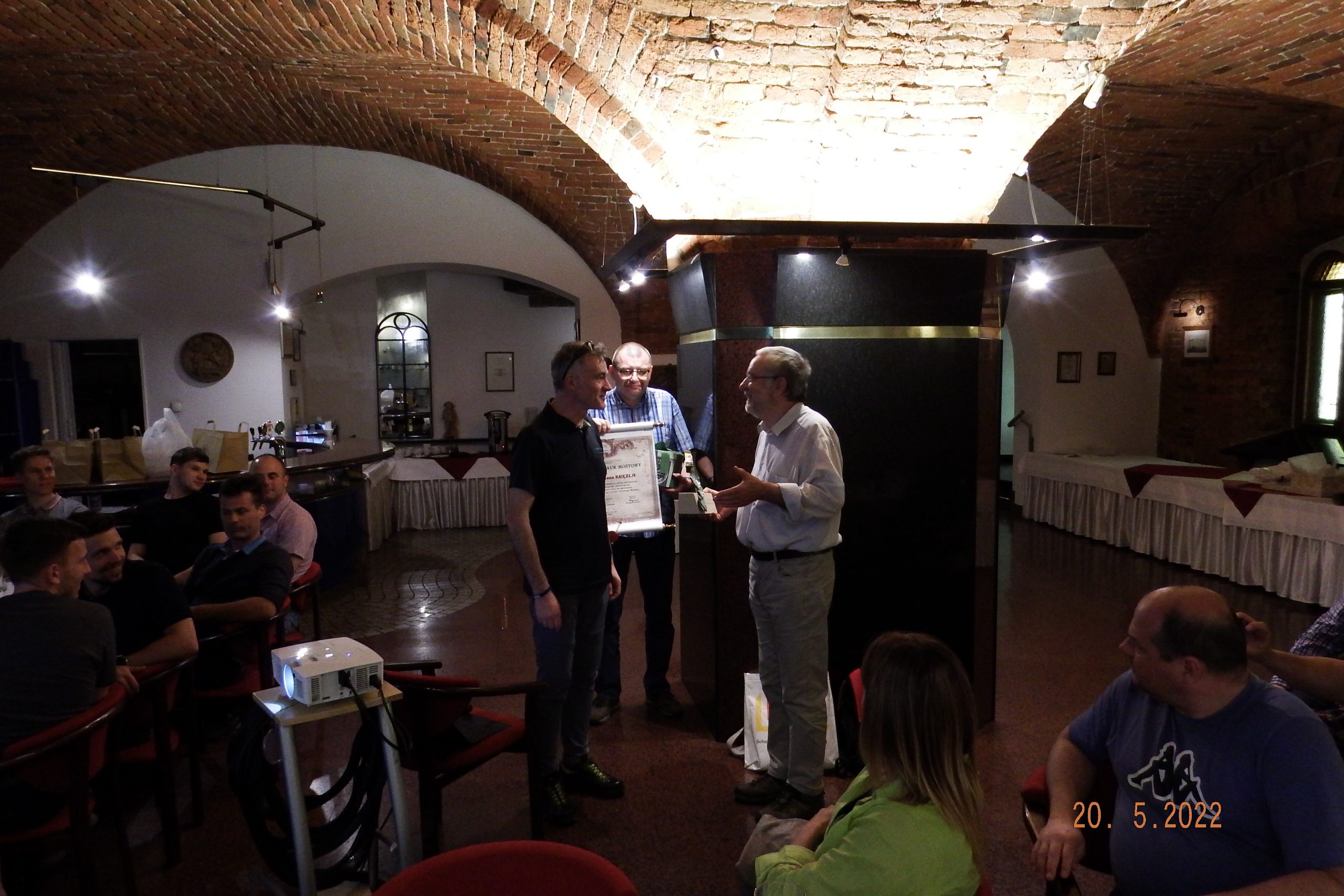 W ramach naszego mostowego spotkania odbyła się też uroczystość związana z nagrodą Górnośląski Laur Mostowy. Statuetka ta wręczana jest za wybitną działalność, aktywność, zaangażowanie i wnoszony wkład pracy na rzecz mostownictwa oraz promowanie Związku Mostowców RP na terenie Górnego Śląska. W tym roku była to już szósta edycja tej nagrody. Jej laureatem został kol. Marian Kręzel, któremu jeszcze raz serdecznie gratulujemy. Statuetkę, okolicznościowy dyplom oraz biksę tradycyjnych śląskich kopalnioków wręczyli członkowie kapituły nagrody w osobach przewodniczącego kol. Marka Salamaka oraz sekretarza kol. Grzegorz Kopcia.
